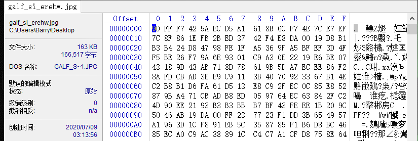 首先题目拿到一张打不开的jpg,放到winhex里发现开头为9D FF,由此知道他是把jpg给到了过来