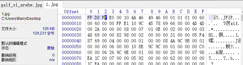 得到一张少了文件头的jpg,填上FF D8 FF,保存得到一张图片