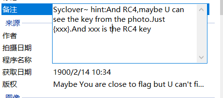 查看图片属性发现为rc4加密,图片中括号里的字符串为密码