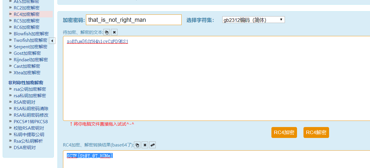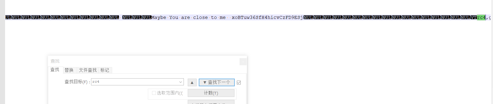 至于密文,用linux里的strings命令查看图片发现了密文,当然也可以直接用notepad++搜索rc4,也能看到